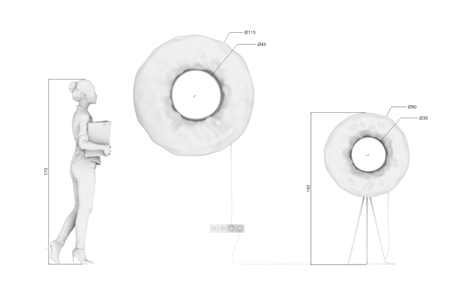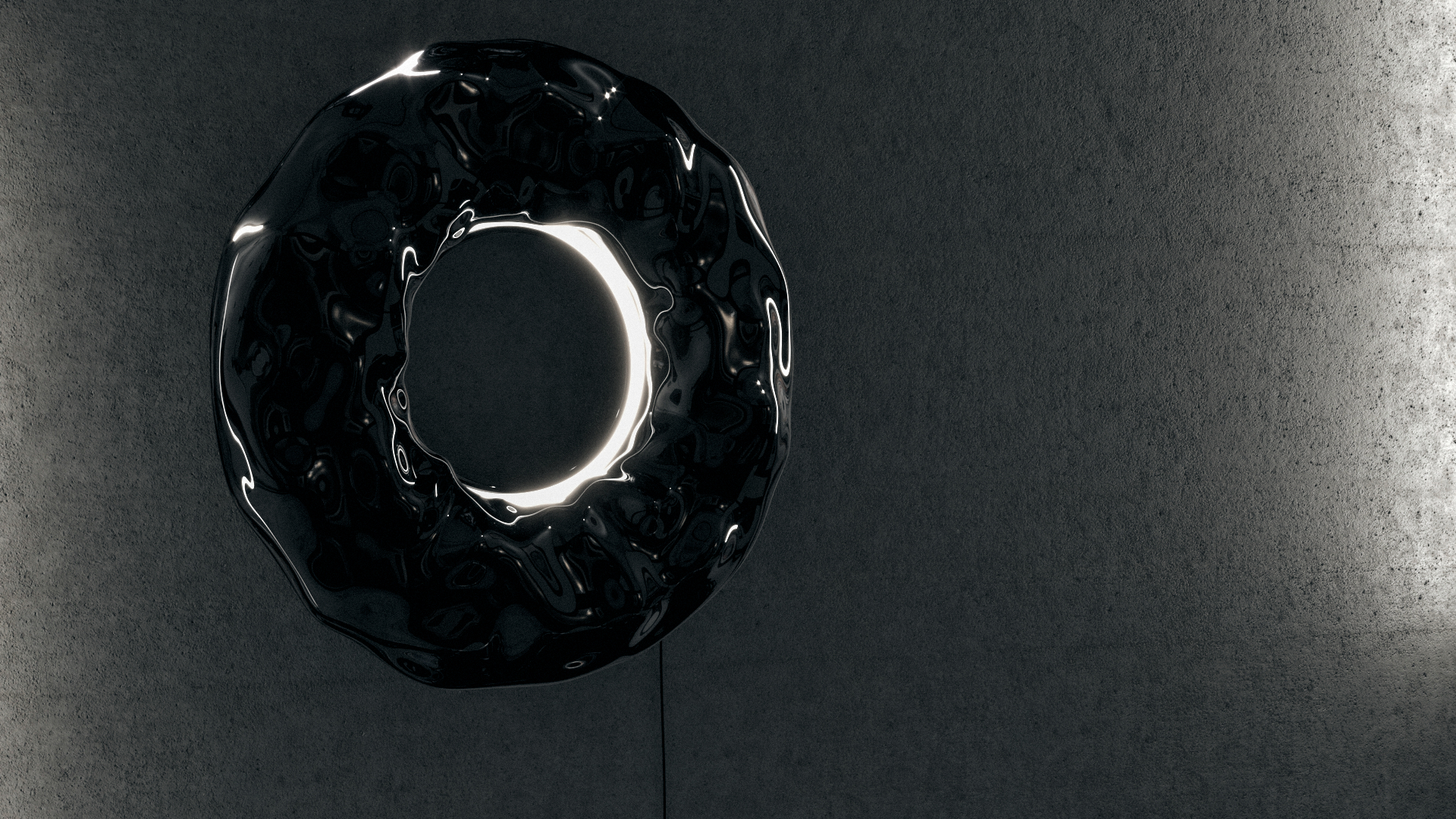 The geometry of light. A torus light-object inspired by cosmic events, both absorbing and emitting light. Aluminium and epoxy surfaces ripple with reflection, enhanced by PI-LED technology that supports circadian rhythm. Sculpture and function in one.