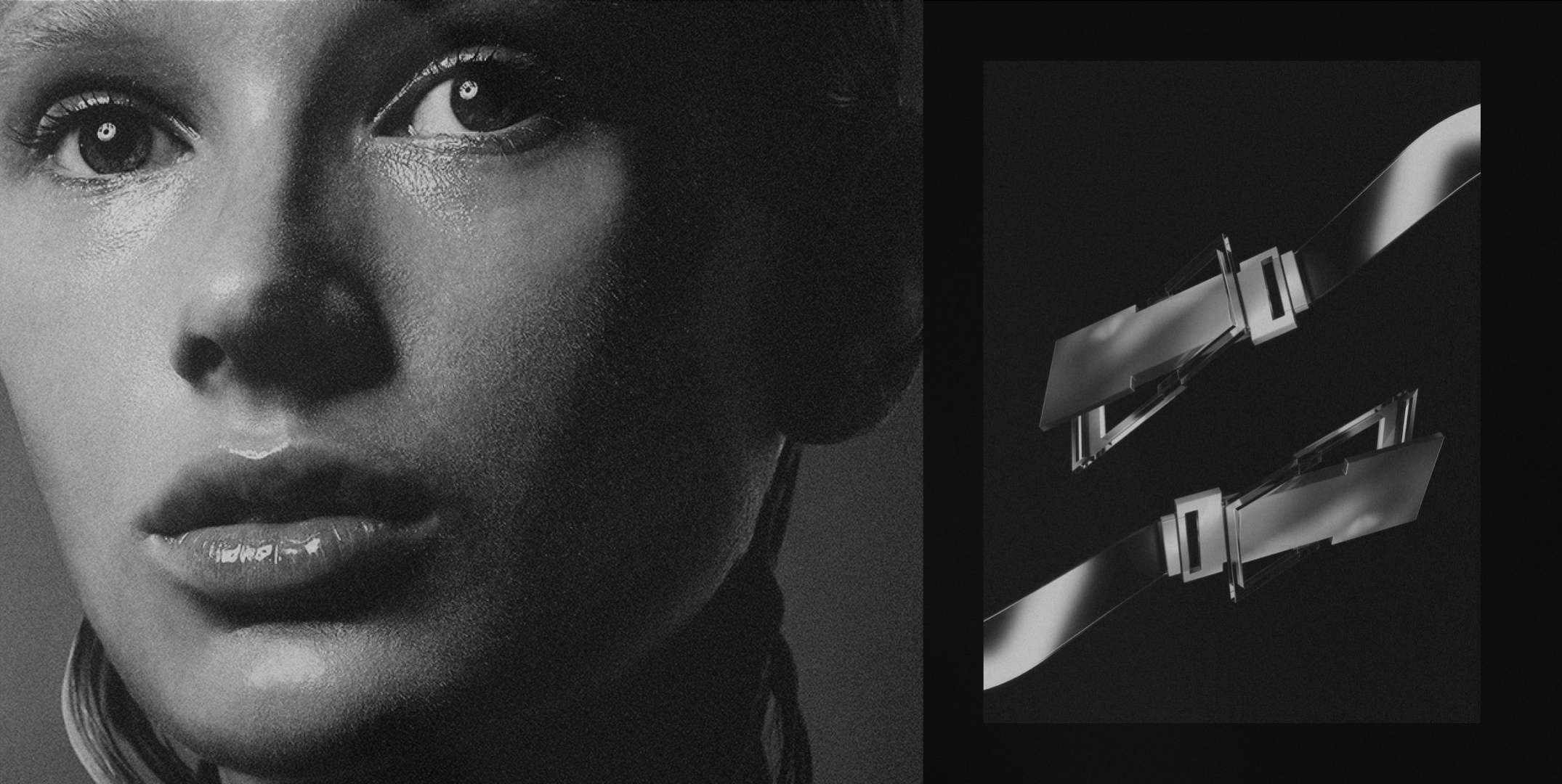 A retail space where digital storytelling extends into the physical. Suspended bent aluminium panels shape the environment, guiding movement and framing perspectives.