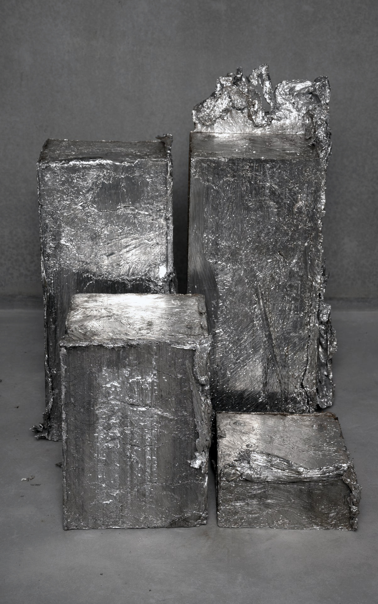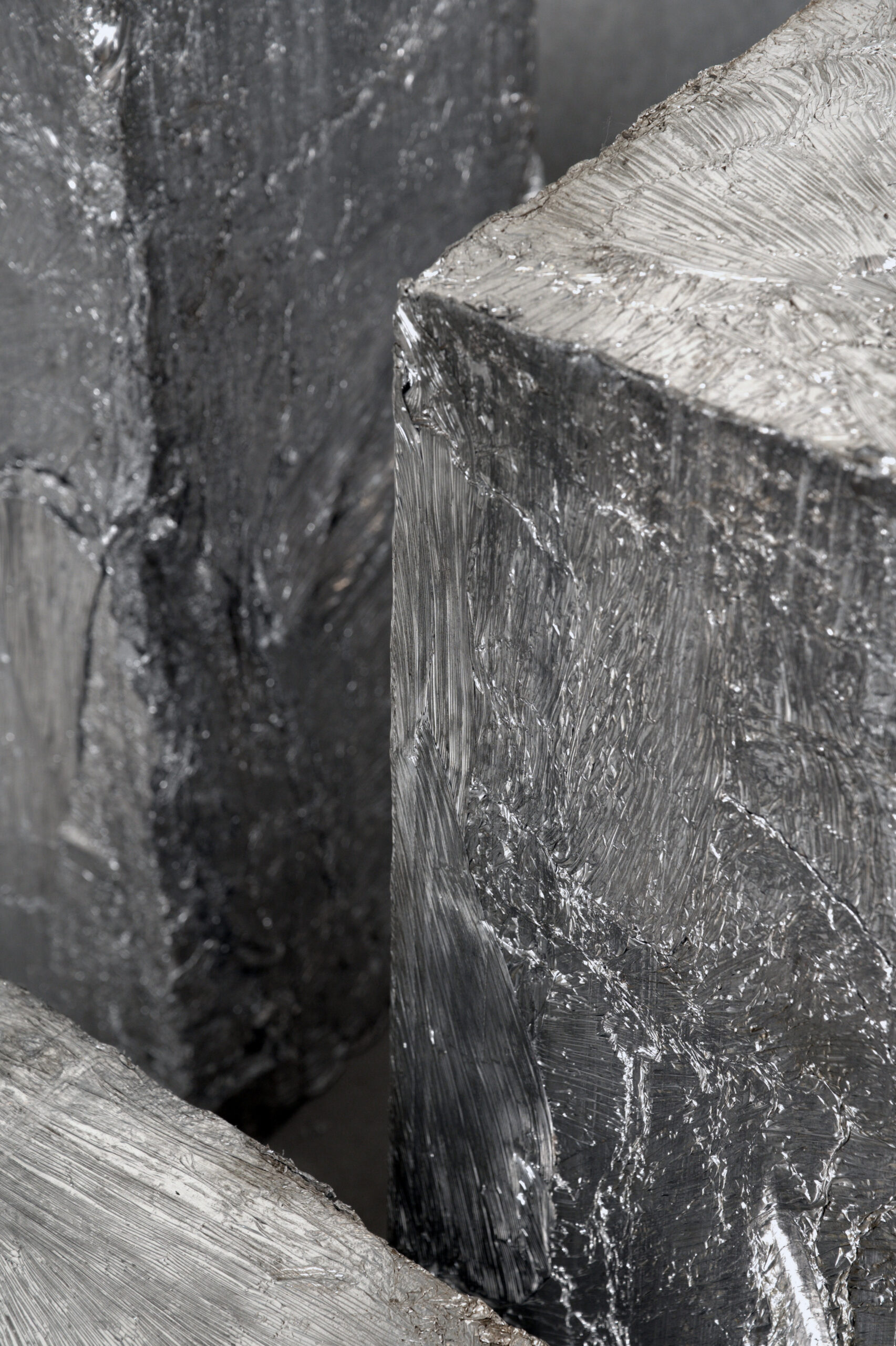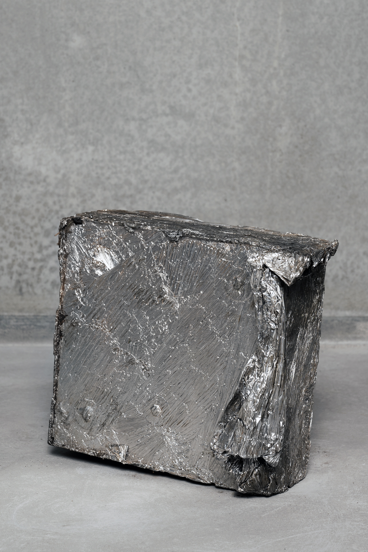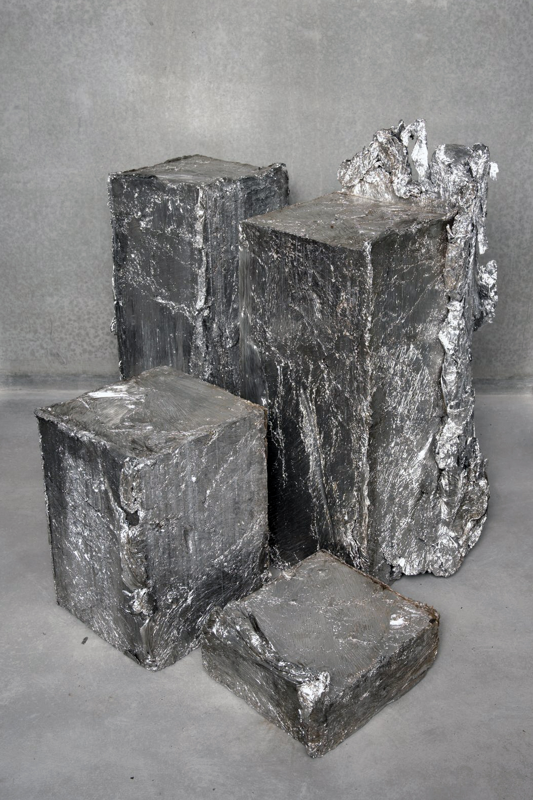 As a follow-up on OM feedback, the installation was compressed into aluminium blocks, transforming a light, flexible structure into dense, heavy yet movable polished volumes.