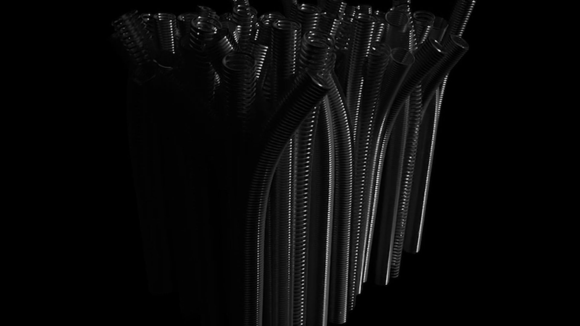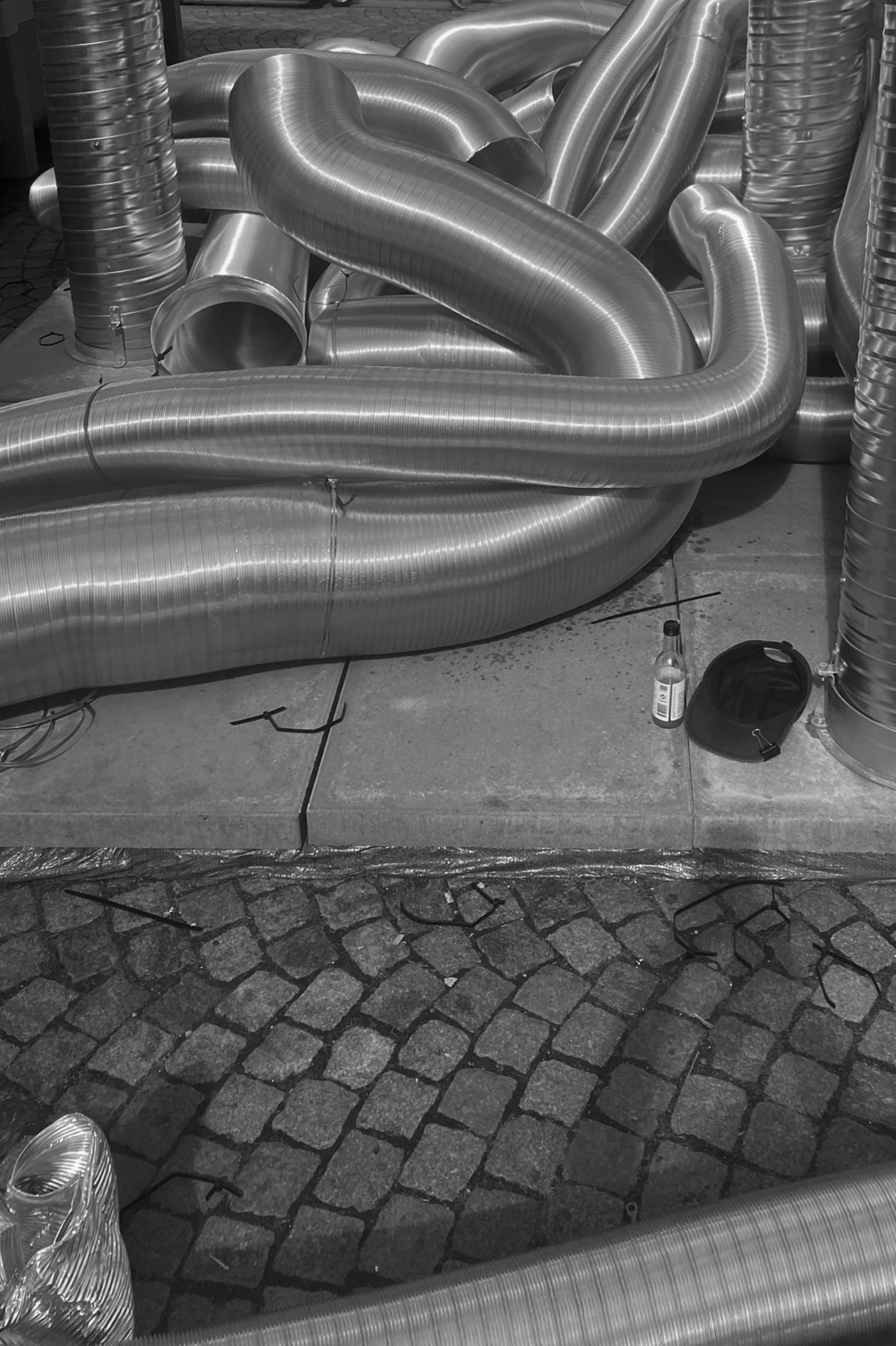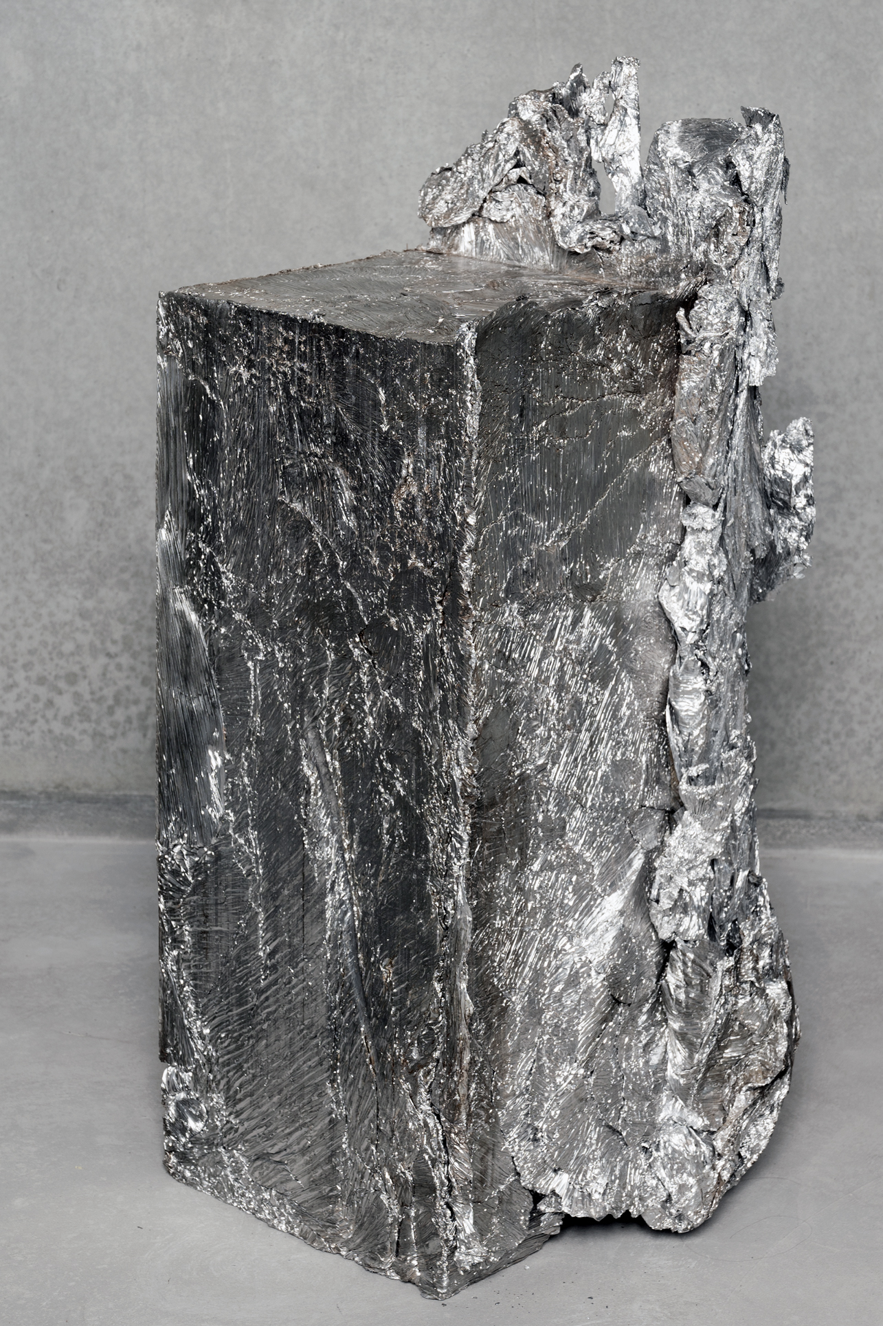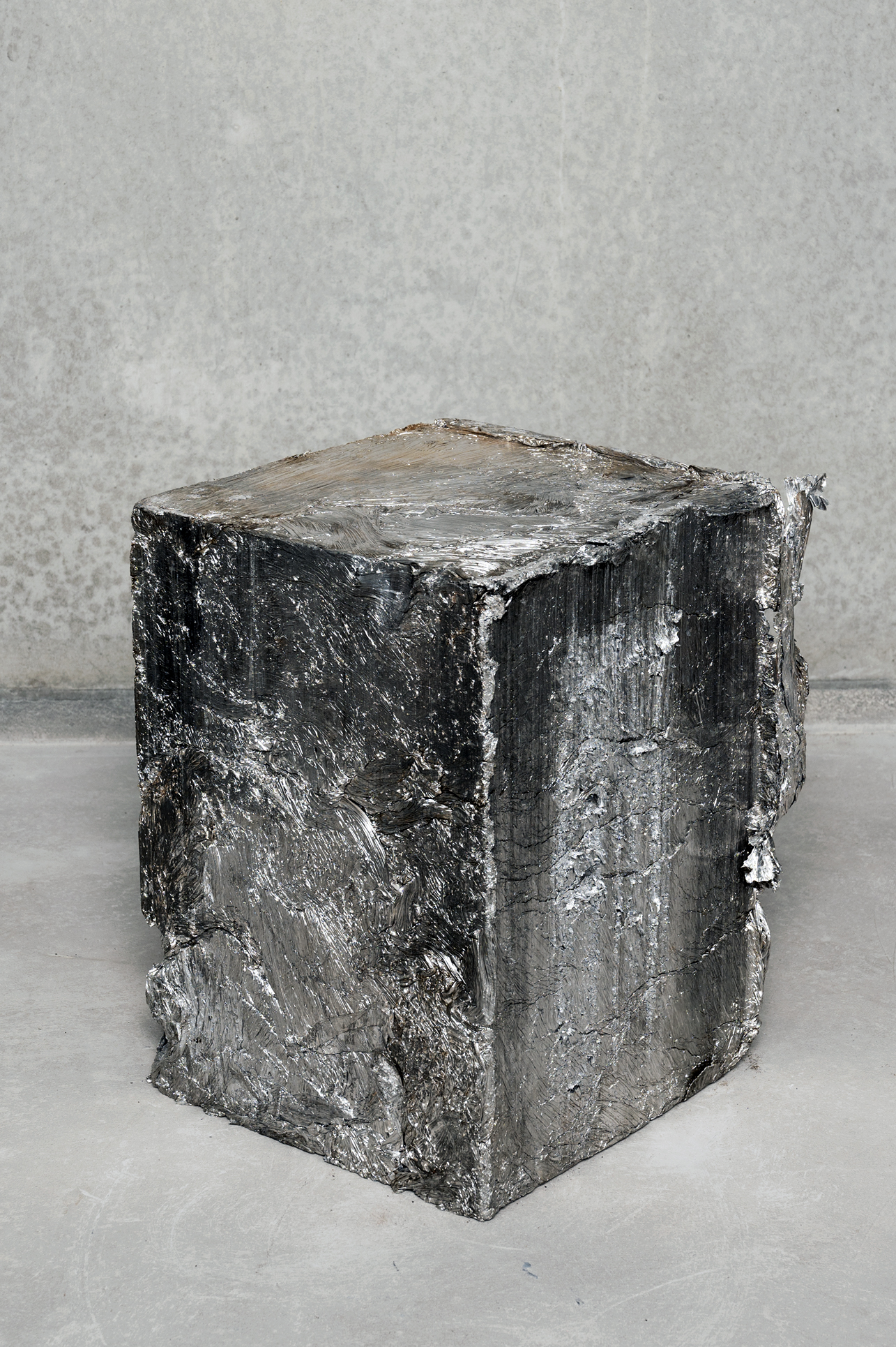 As a follow-up on OM feedback, the installation was compressed into aluminium blocks, transforming a light, flexible structure into dense, heavy yet movable polished volumes.